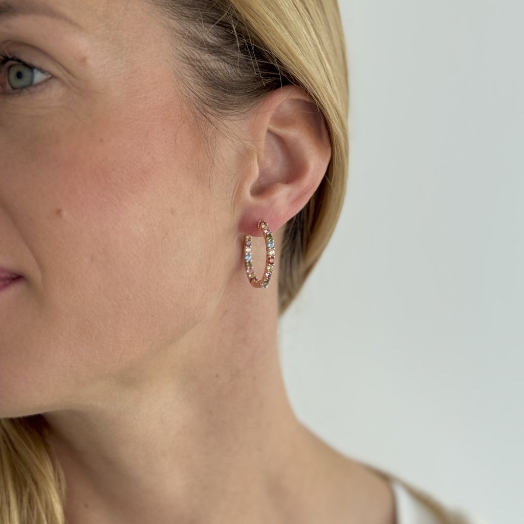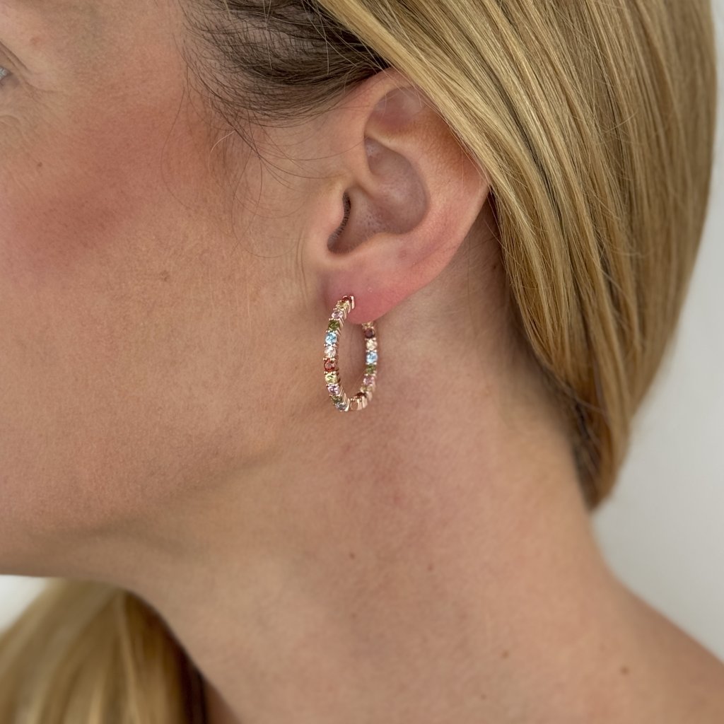 Tento skvost z naší kolekce je vyroben z kvalitního stříbra 925, takže je ideální pro ty, kteří mají rádi luxus a nekompromisní kvalitu. Tento stříbrný klenot je doplněn kloubovým zapínáním, které zajišťuje bezpečnou a pohodlnou manipulaci. Barevné zirkony na těchto kruhových náušnicích jsou nápadité a zároveň decentní, takže je můžete nosit v jakékoli příležitosti - ať už je to obyčejný den v práci nebo večerní party.