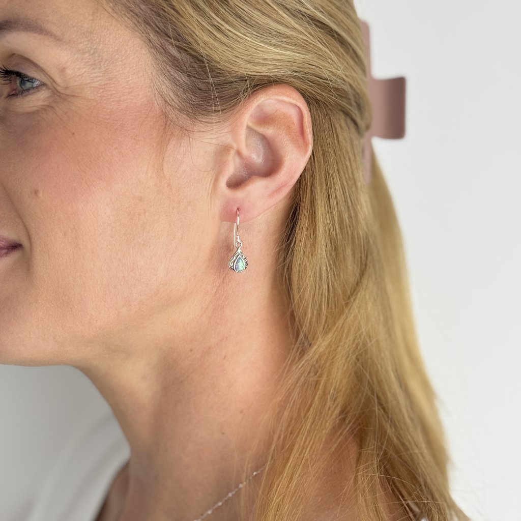Syntetický opál v jemných růžových tónech je obklopen jemným zdobením, které dodává šperku nádech luxusu. Povrchová oxidová úprava a antikorózní vlastnosti zajišťují, že náušnice zůstanou krásné i po mnoha letech nošení.
