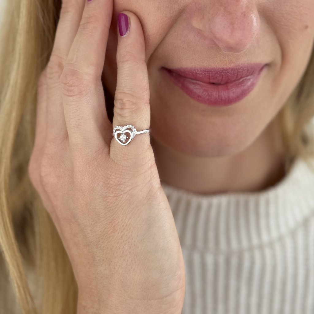 Stříbrný prsten s dvojitým srdcem s kamínkem je skvělým způsobem, jak vyjádřit svou lásku a učinit momenty strávené s vaší polovičkou nezapomenutelnými.