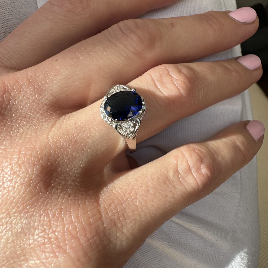Tento prsten je vyroben z vybraného stříbra 925 a zaujme nejen svým leskem, ale také rhodiovou úpravou, která zajišťuje odolnost proti poškrábání a opotřebení. V centru prstenu dominuje nádherný safír o rozměrech 9 ×7 mm, obklopený jiskřivými zirkony, které jej dokonale doplňují a vytvářejí efekt plného lesku a luxusu.