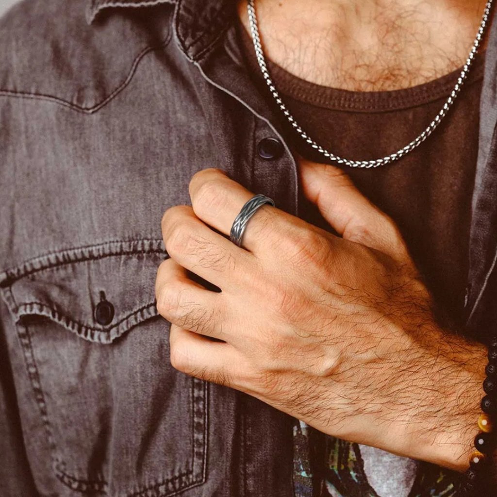 Oxidovaná povrchová úprava zvýrazňuje detaily proplétání a vytváří zajímavý kontrast, díky němuž prsten NOAH vyniká. S šířkou 5 mm je dostatečně výrazný, ale zároveň pohodlný pro každodenní nošení.
