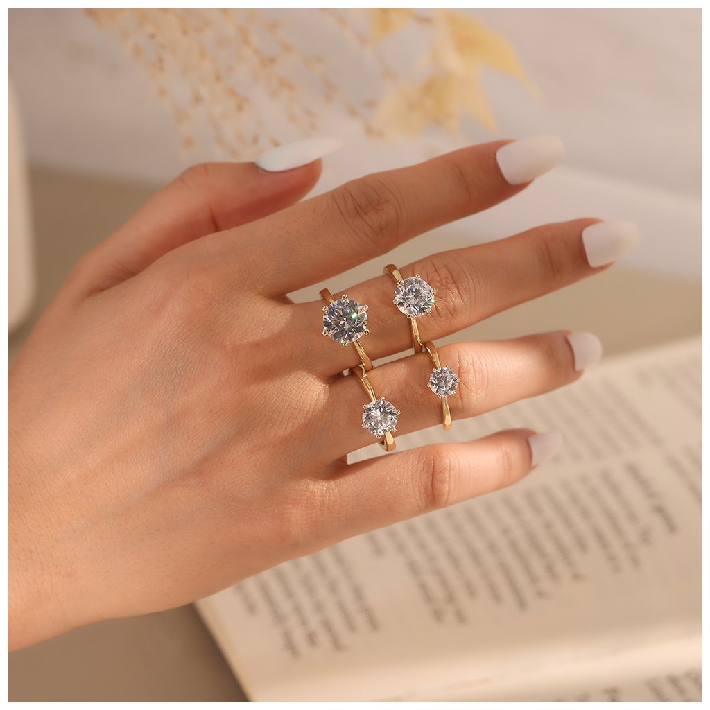 Prsten NIKOL vynikne samostatně jako solitér. Pro moderní vzhled jej kombinujte s jemnými minimalistickými prsteny nebo sladěnými rhodiovanými náušnicemi a náhrdelníkem.