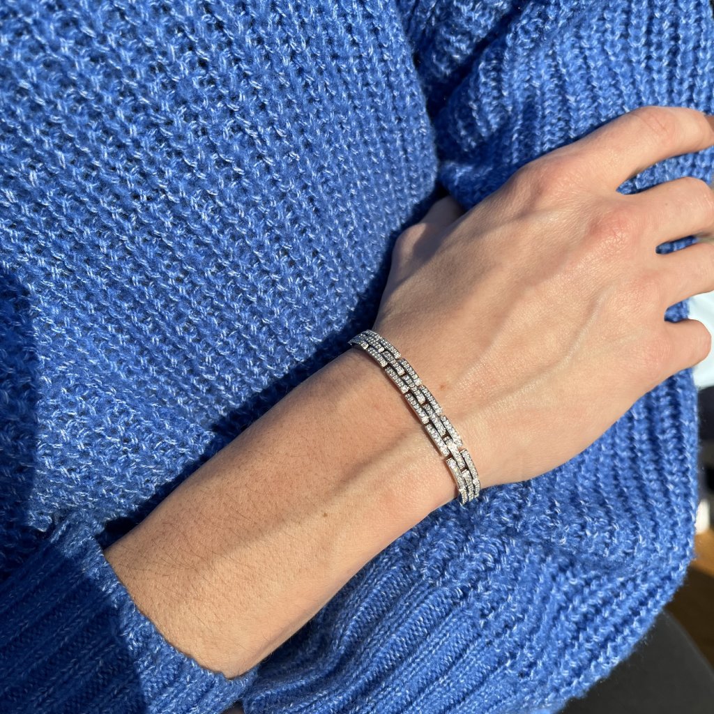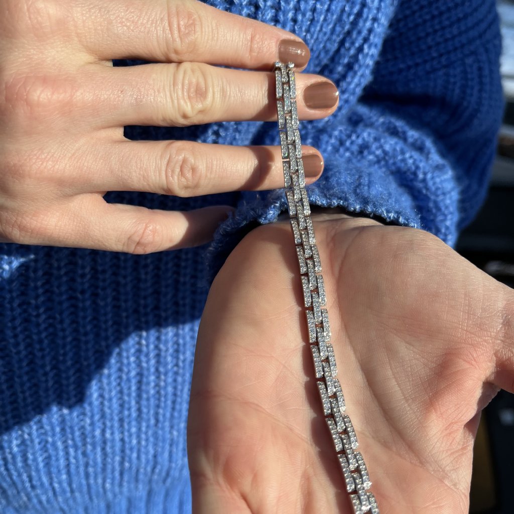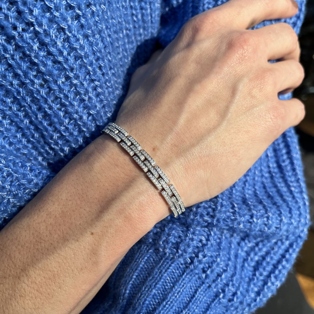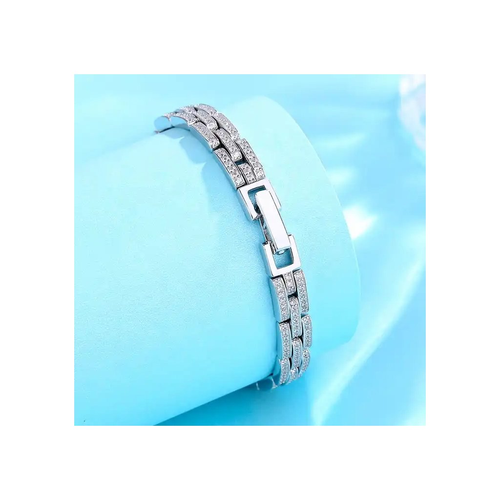 Barva stříbrná spolu s čirými zirkony dodává náramku univerzální vzhled, který lze snadno kombinovat s různými outfity, od denního nošení po večerní gala události.