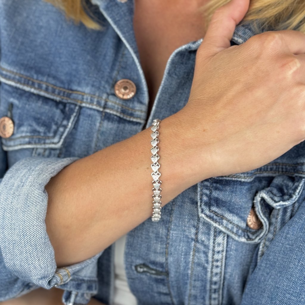 Vyroben z kvalitního stříbra 925 a zdoben jemnými srdíčky osázenými zářivými zirkony, tento náramek představuje nejen symbol lásky, ale i sofistikovanosti a nadčasové elegance. Rhodiovaný povrch dodává šperku extra lesk a zajišťuje jeho dlouhotrvající krásu bez ztráty barvy.