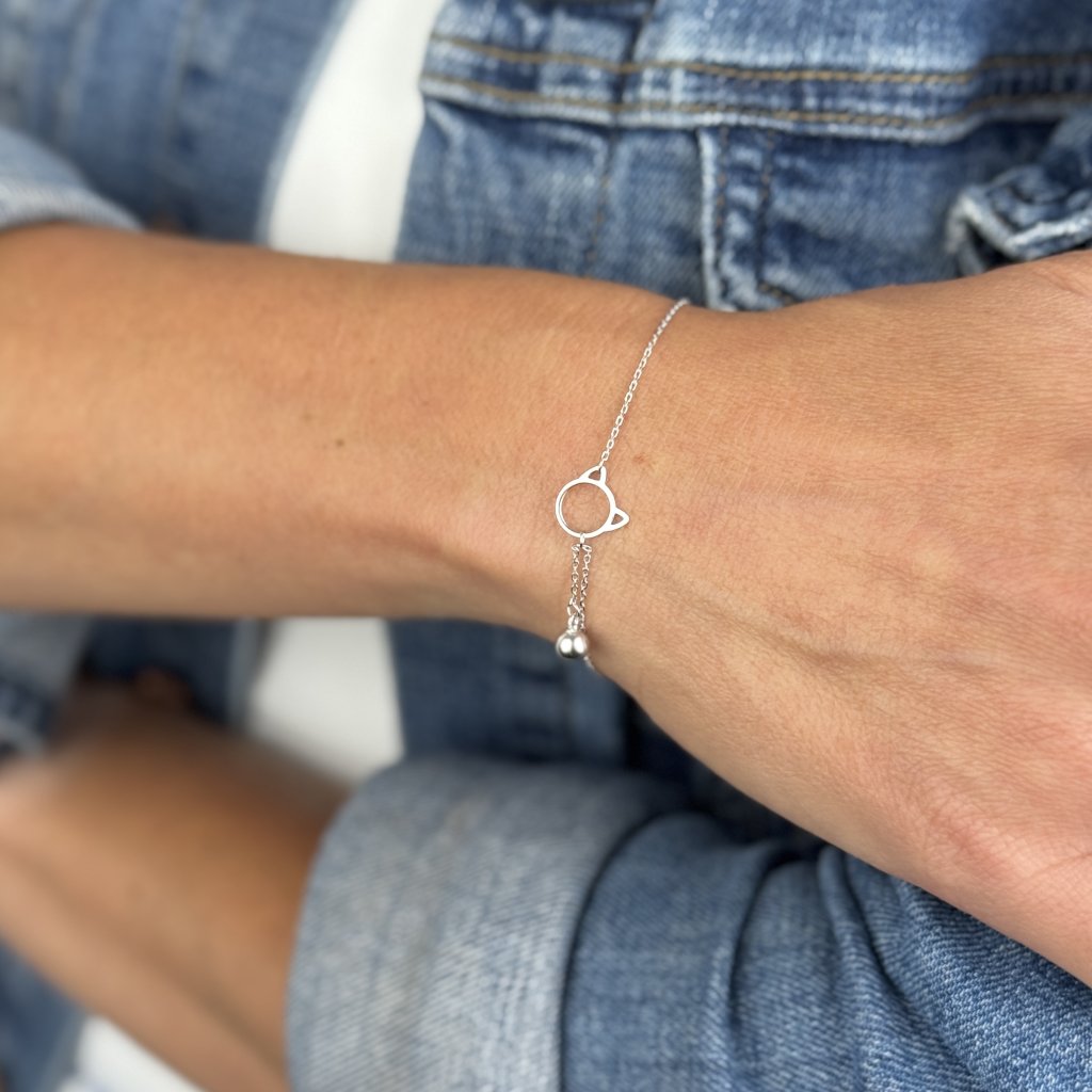 Stříbrný náramek ELISA s roztomilým motivem kočičky, ideální dárek pro všechny milovnice koček. Tento náramek je vyroben z vysoce kvalitního stříbra Ag925/1000 a ošetřen antikorózní úpravou pro dlouhotrvající lesk a odolnost.