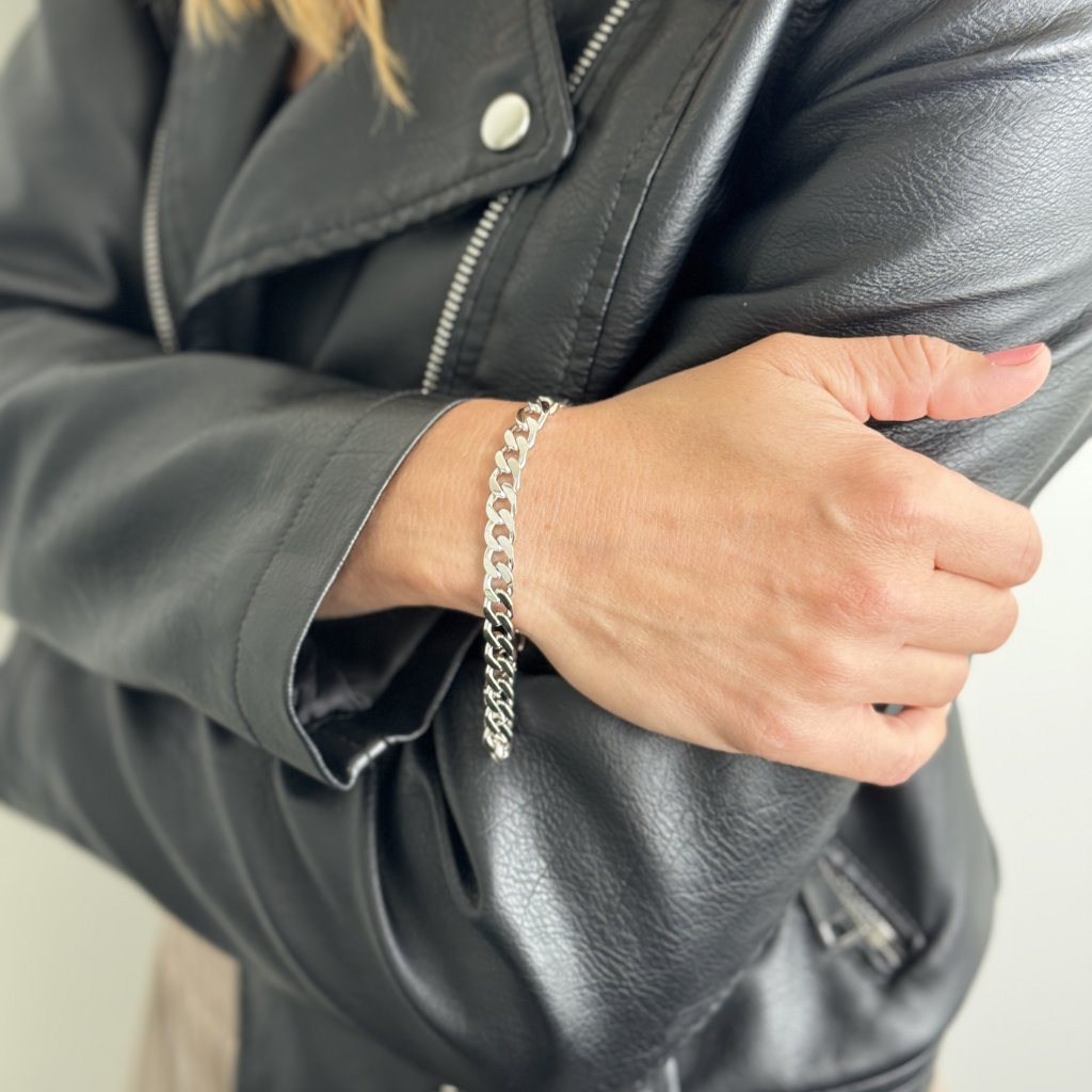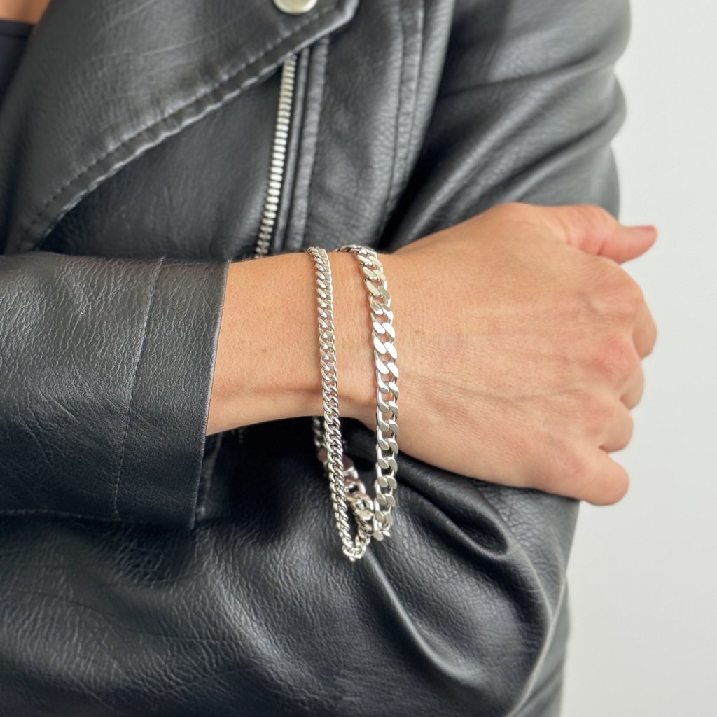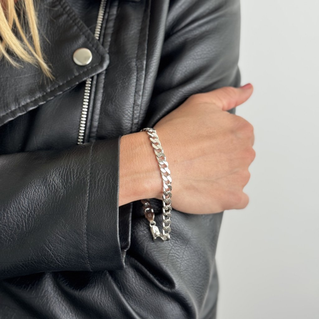 Stříbrný náramek LUCAS je ztělesněním síly a elegance. S délkou 22 cm a impozantní šířkou 7 mm je tento náramek skutečným statement kouskem. Cuban styl dodává náramku mohutný vzhled, který ocení především muži, ale i ženy toužící po výraznějších špercích.