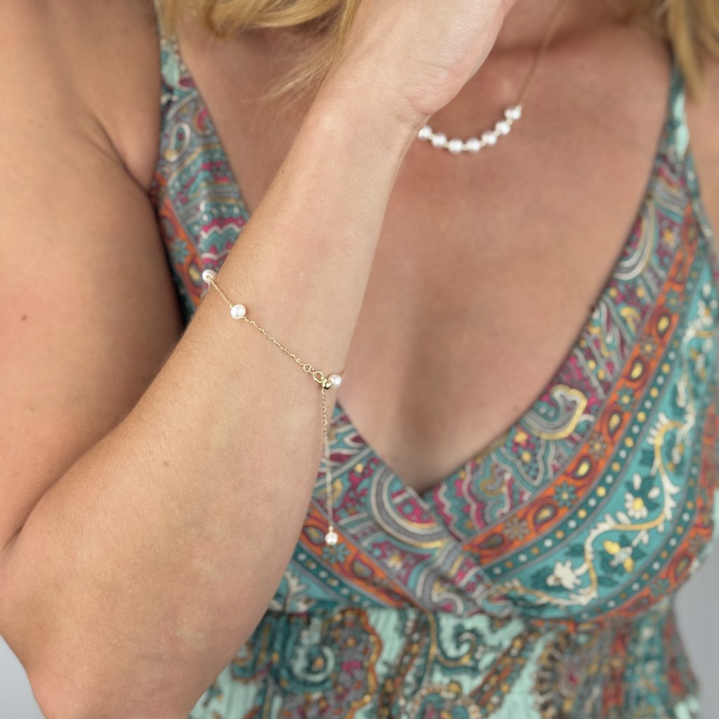 Náramek zdobí šest překrásných sladkovodních perel o průměru 4 mm, které jsou symetricky rozmístěny po délce řetízku. Praktická nastavitelná délka 20 + 4 cm umožňuje perfektní přizpůsobení každému zápěstí.