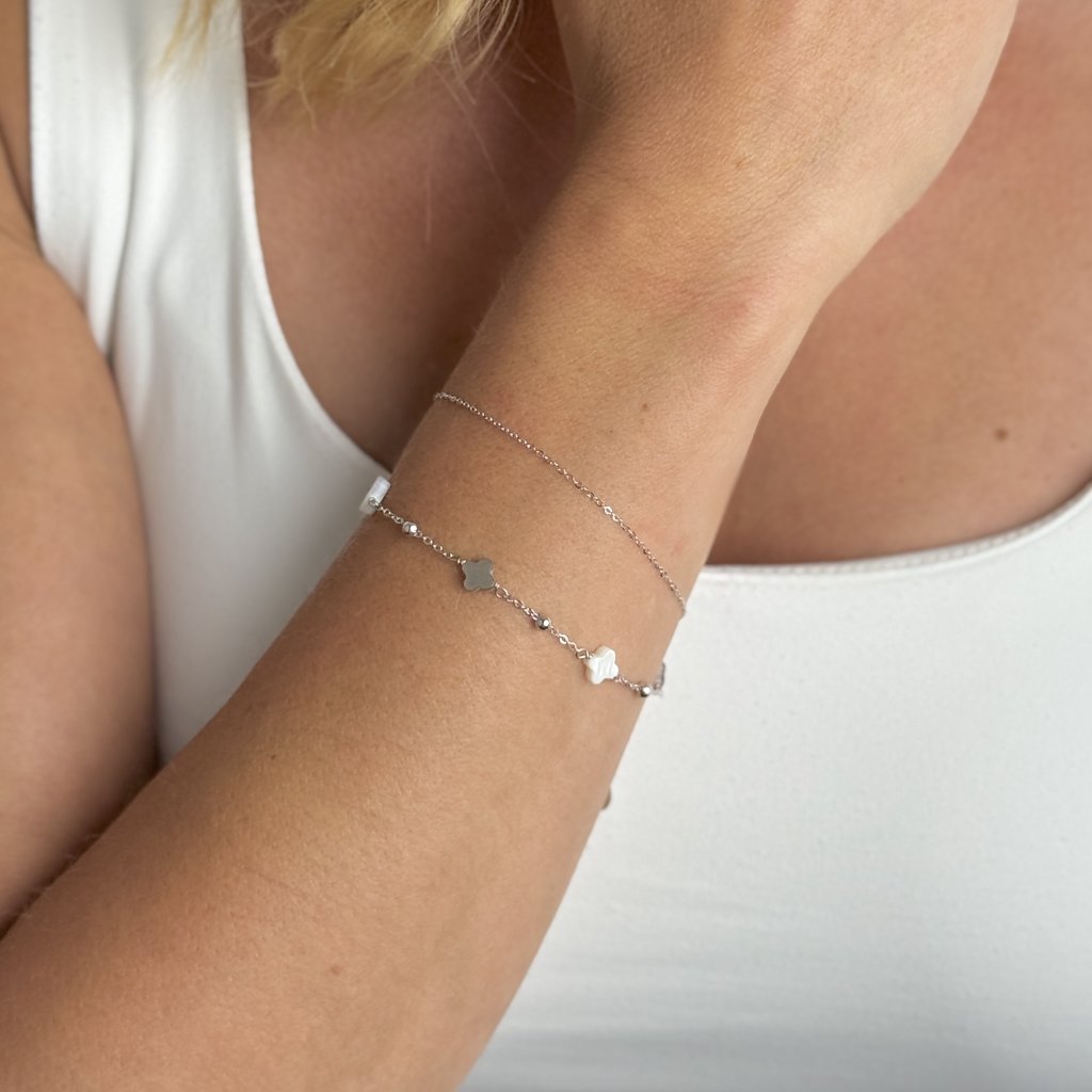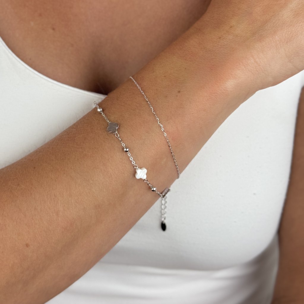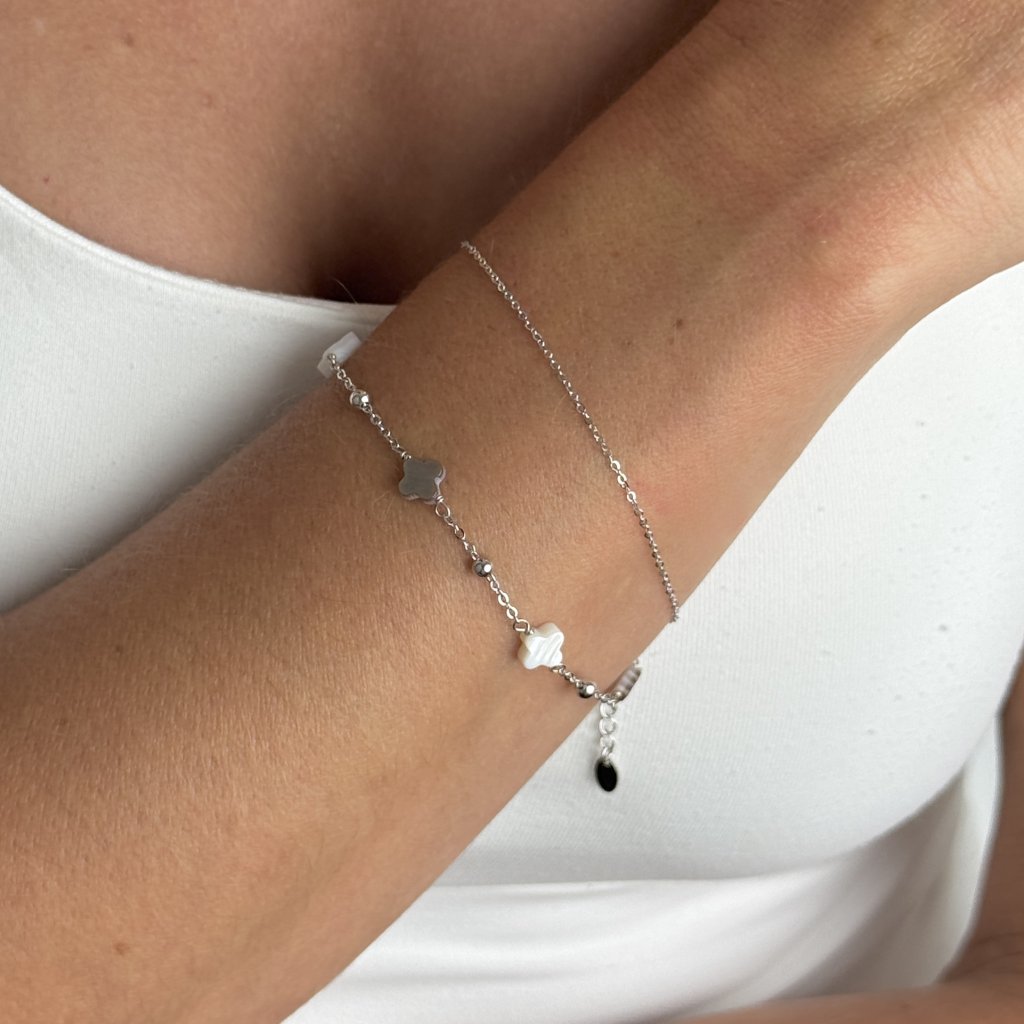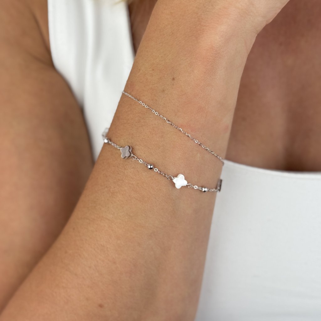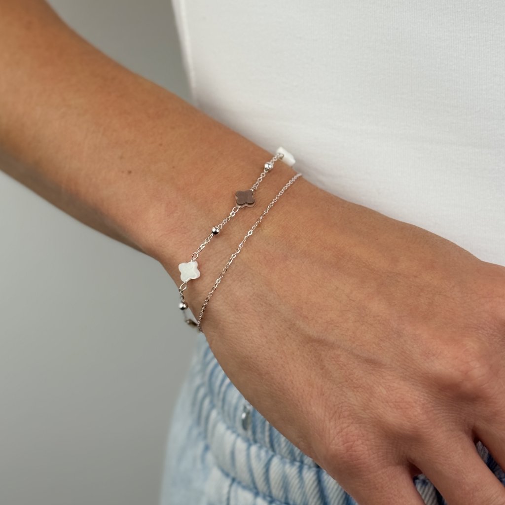 Stříbrný lesk ve spojení s perleťovým vzhledem perel a dalšími detaily v bílé a šedé barvě umožňuje kombinovat náramek s různými styly oblečení - od casual po elegantní.