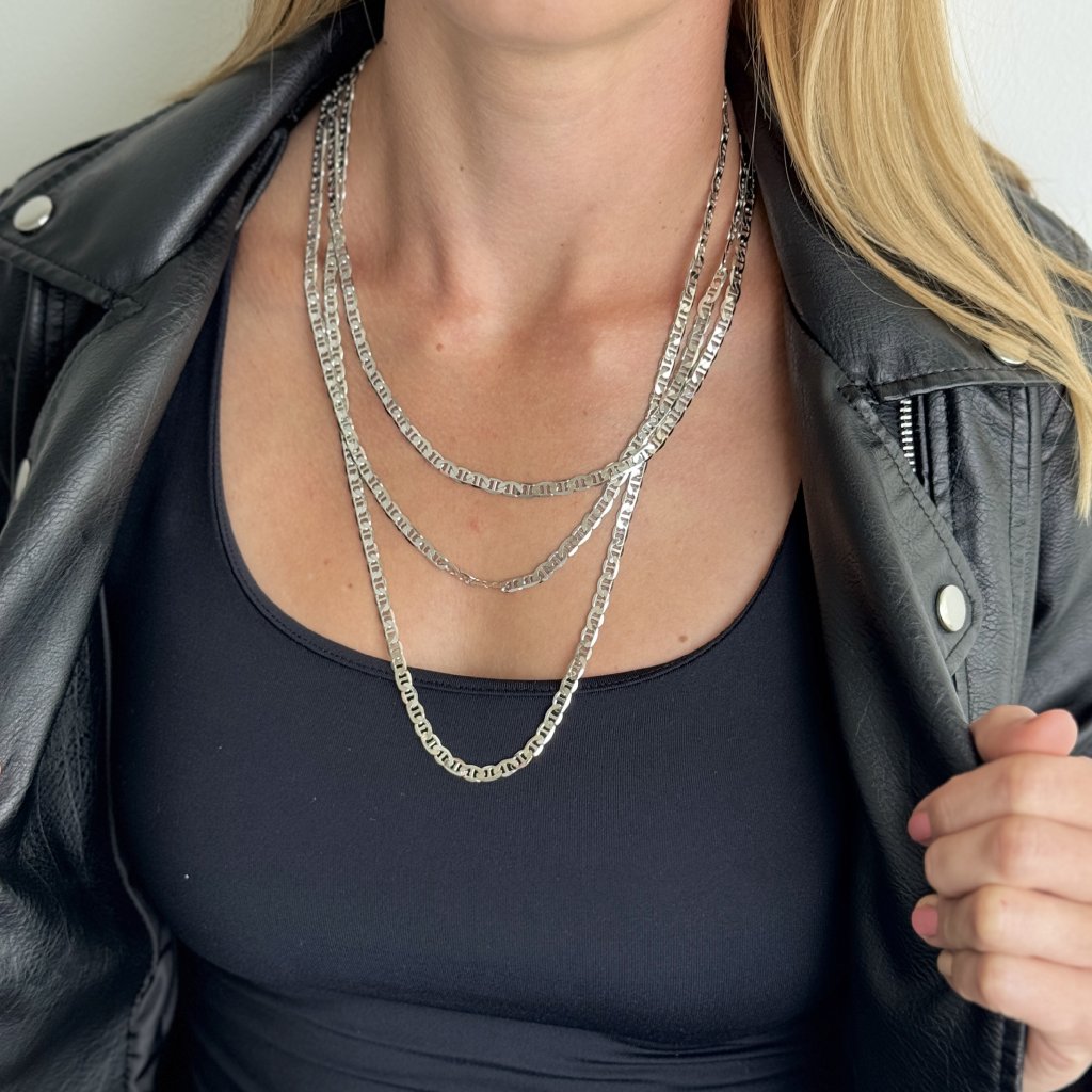 Stříbrný řetízek FABIEN v nadstandardní délce 65 cm představuje vrchol luxusu mezi šperky pro náročné. Styl Flat Mariner s charakteristickými plochými, vzájemně propojenými články vytváří působivý vzhled, který z vás udělá středobod pozornosti.