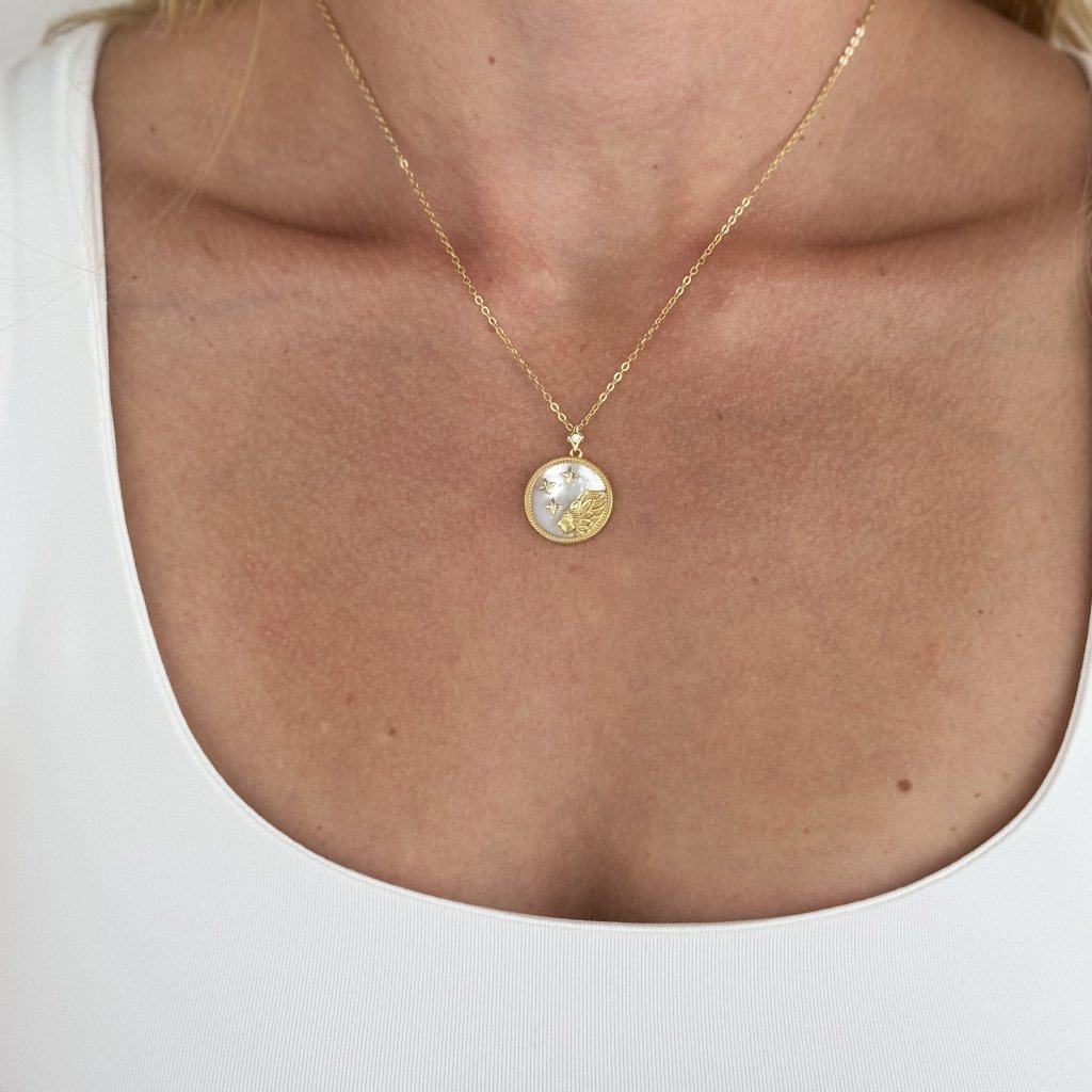 Stříbrný přívěsek s řetízkem MOONLIGHT LEO je dokonalým dárkem pro všechny narozené ve znamení Lva. Tento šperk v sobě spojuje sílu a krásu tohoto ohnivého znamení. Pozlacený kulatý přívěsek o průměru 18 mm je ozdoben vyobrazením Lva na bílém pozadí, které evokuje záři měsíční oblohy.