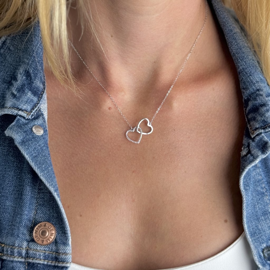 Stříbrný řetízek s přívěskem DOUBLE HEART je okouzlující šperk, který oslavuje lásku ve všech jejích podobách. Přívěsek je vyroben z kvalitního stříbra 925/1000 s rhodiovanou povrchovou úpravou pro dlouhotrvající lesk a odolnost.