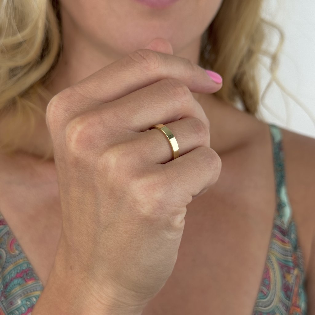Pozlacený stříbrný prsten COLETTE je univerzální a nadčasový šperk, který svým minimalistickým designem okouzlí muže i ženy. Prsten je vyroben ze stříbra 925/1000 a jeho povrch je pozlacen 14karátovým zlatem, což mu dodává luxusní vzhled a dlouhou životnost. Díky své šířce 3 mm je dostatečně subtilní na každodenní nošení, ale zároveň dostatečně výrazný, aby zaujal.
