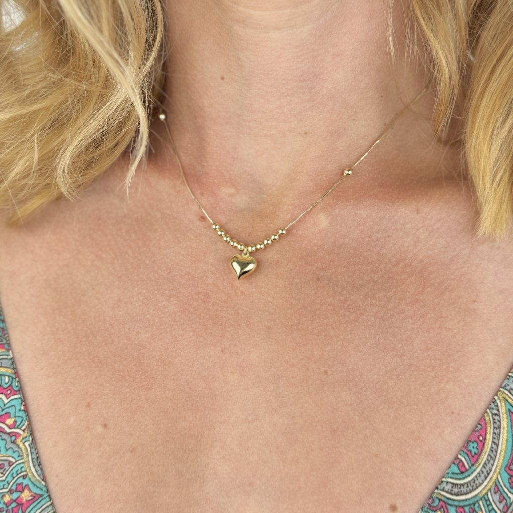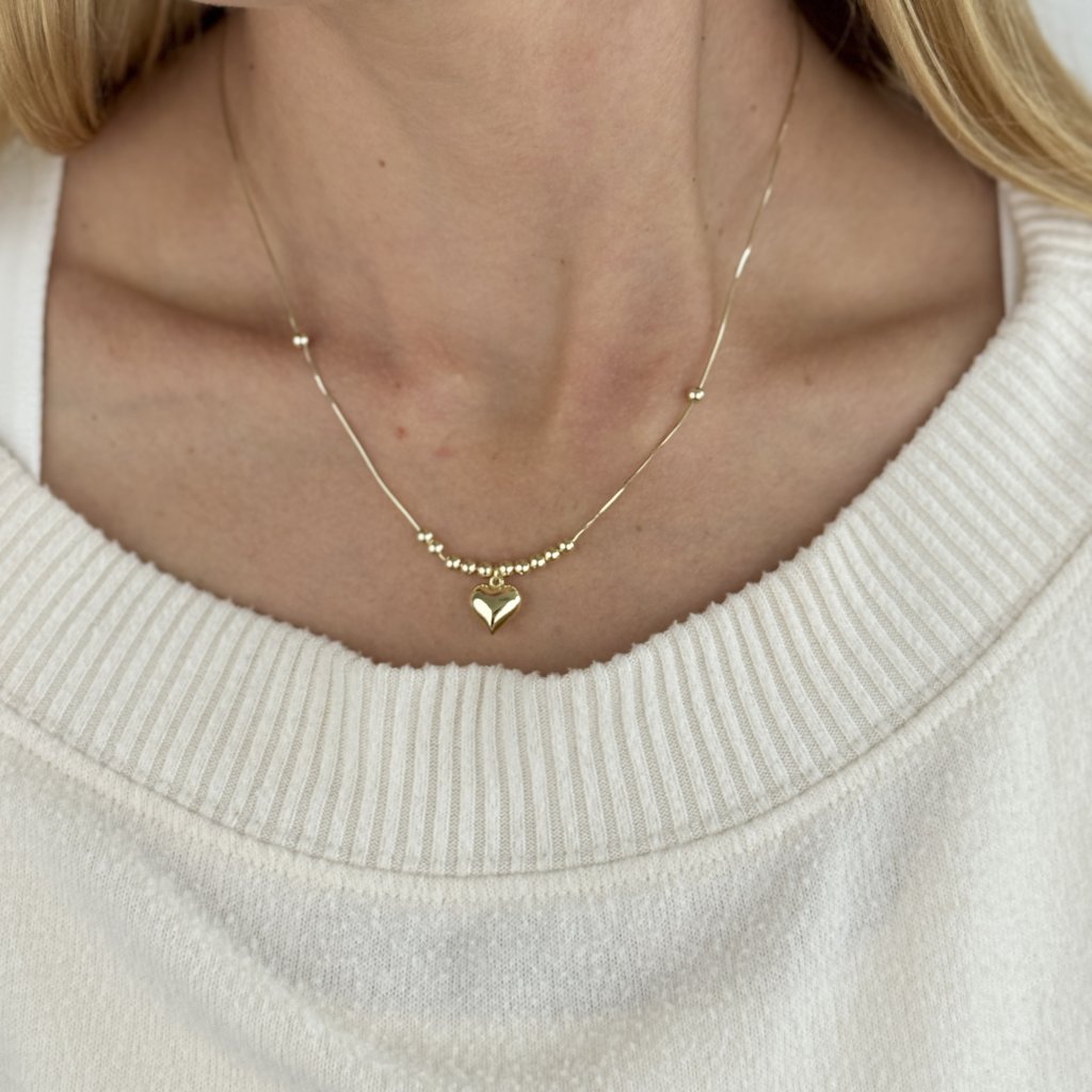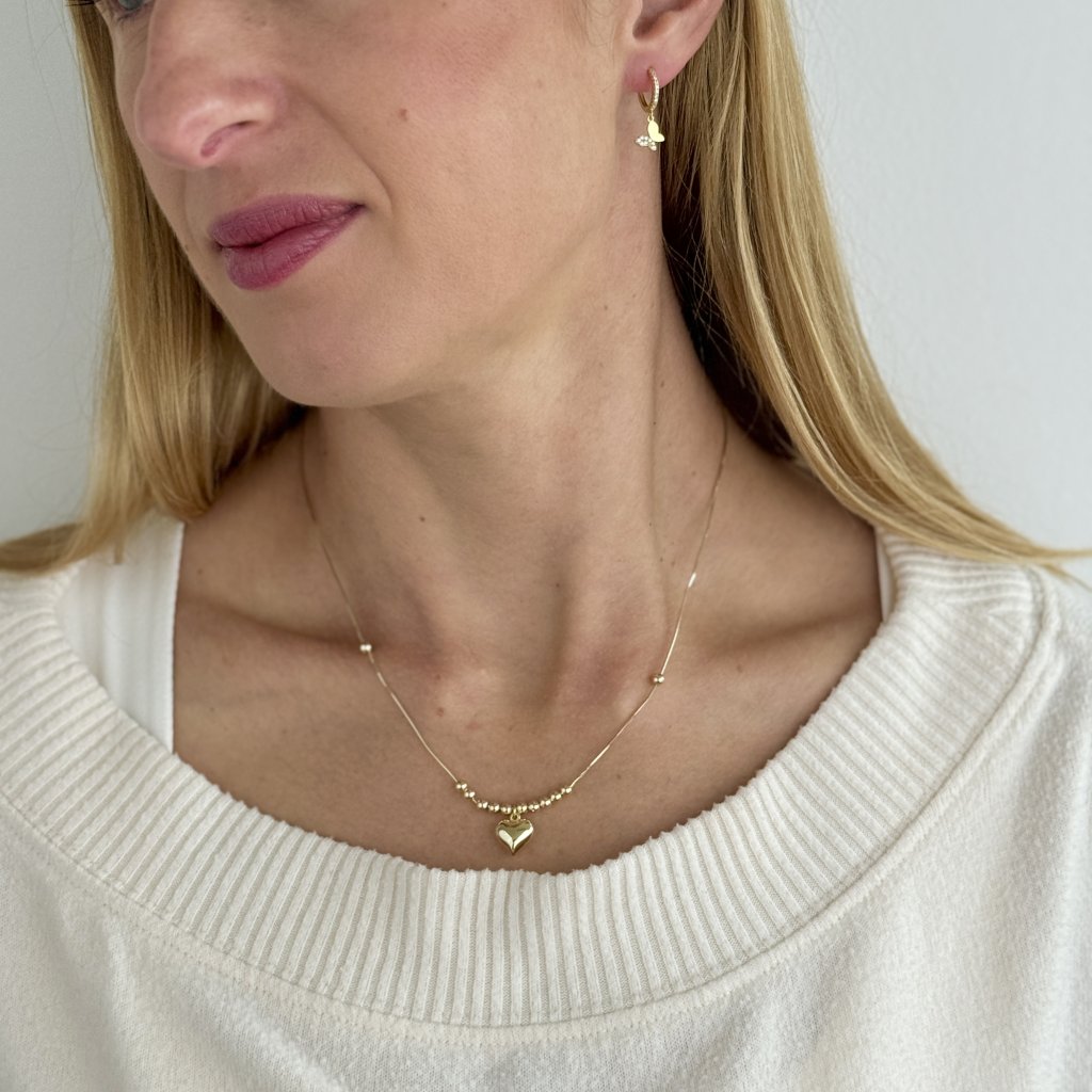 Stříbrný řetízek YASMINE s pozlaceným přívěskem ve tvaru srdce představuje dokonalé spojení elegance a hravosti. Přívěsek o rozměrech 11 × 10 mm je doplněn pohyblivými kuličkami o průměru 3 mm, které se jemně pohybují po stranách srdce a dvěma pevnými kuličkami, což dodává šperku dynamický a jedinečný vzhled.