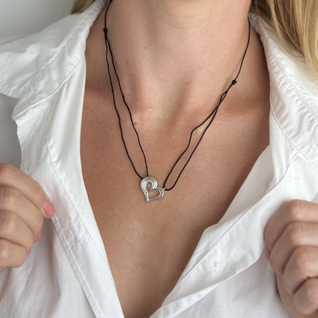 11894 Stříbrný přívěsek HEART s černou šňůrkou Ag925/1000; ≤4,15 g