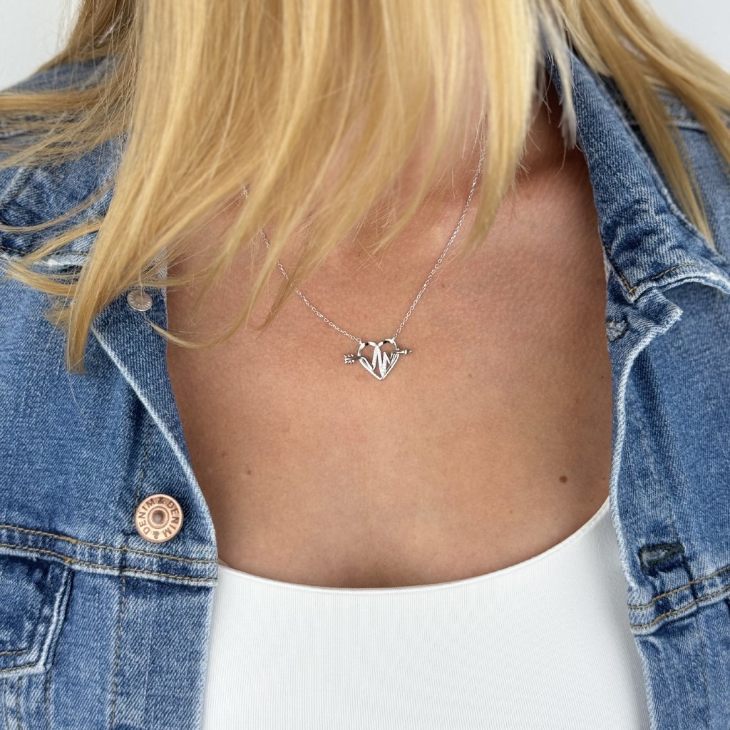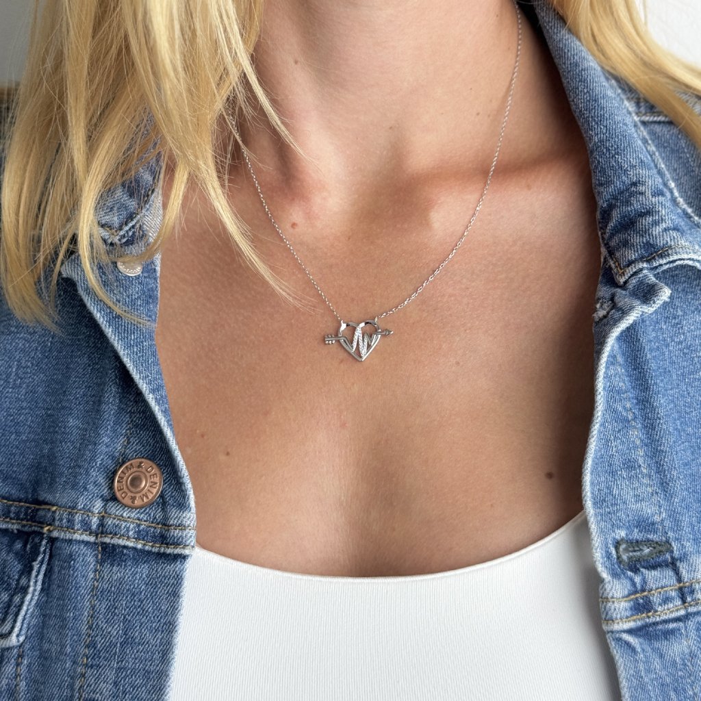 Srdce, vyrobené z ryzího stříbra 925, je jemně rhodiované pro dodání extra lesku a odolnosti. Šíp, osázený řadou zirkonů, propichuje srdce, symbolizuje silnou a stálou lásku.