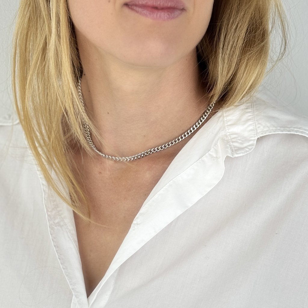 S délkou 40 cm je ideální pro nošení těsně u krku a díky své šířce vytváří opravdu působivý dojem. Precizní zpracování zajišťuje vysokou odolnost pro každodenní nošení. Rhodiovaná povrchová úprava minimalizuje nutnost údržby.