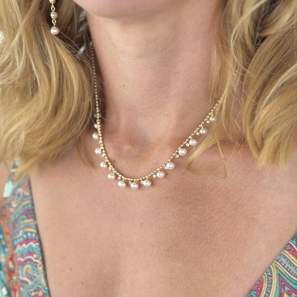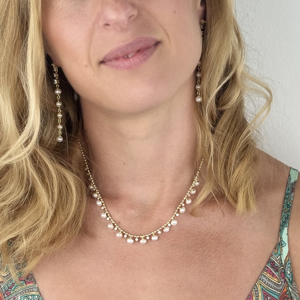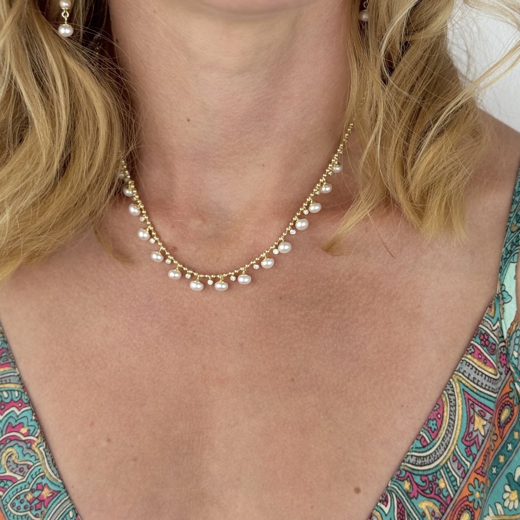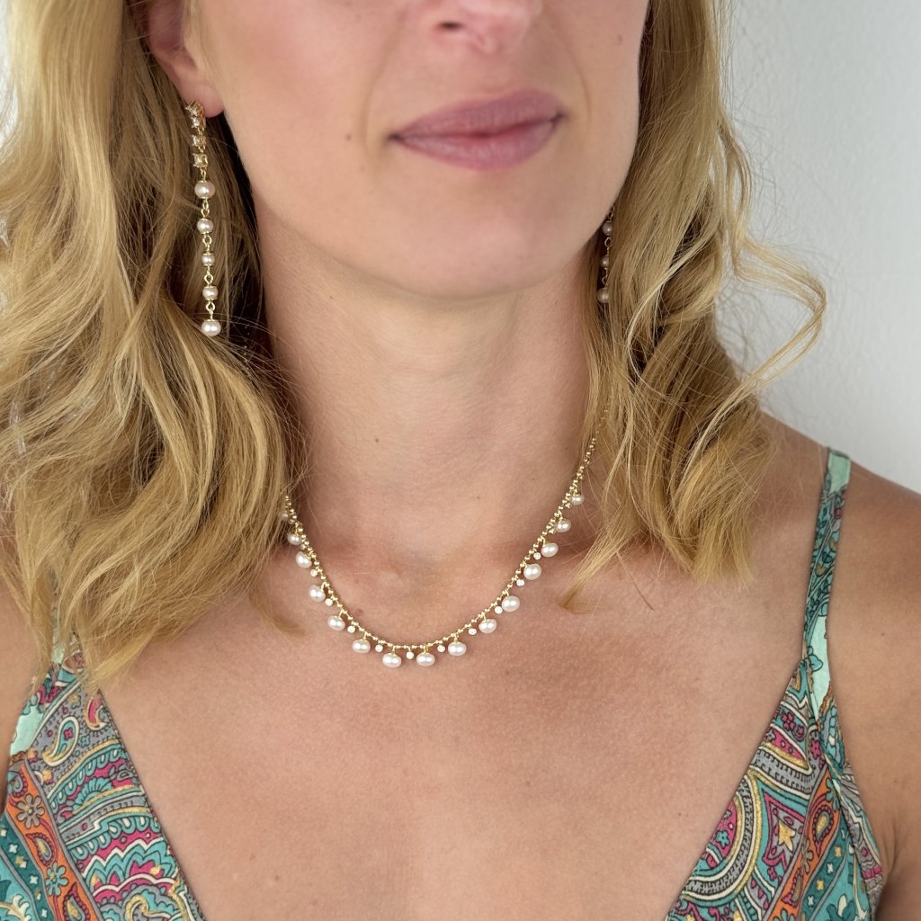 Objevte jedinečnost pozlaceného řetízku JUNE, který přináší novou interpretaci klasického šperku. Vyroben z prvotřídního stříbra 925/1000 s luxusním 14karátovým zlacením. Řetízek kombinuje styl Pearl and Beads, kde přední část zdobí sladkovodní perly o průměru 5 mm společně s třpytivými zirkony o velikosti 1 mm.