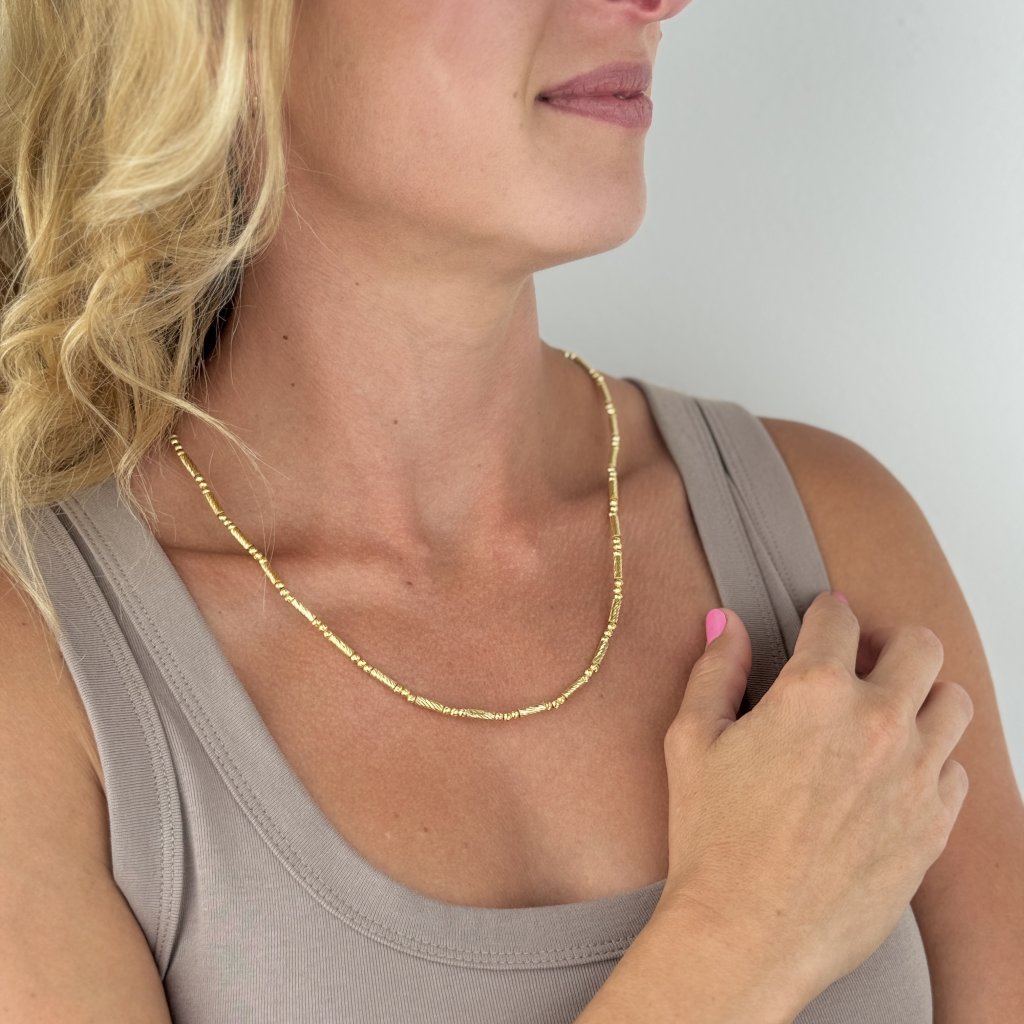 Vyroben z kvalitního stříbra ryzosti 925/1000 s luxusním zlatým pokovením, působí řetízek FARIDA dojmem exotického egyptského šperku. S celkovou délkou 55 cm a šířkou 3 mm poskytuje dostatečnou variabilitu pro různé styly nošení.