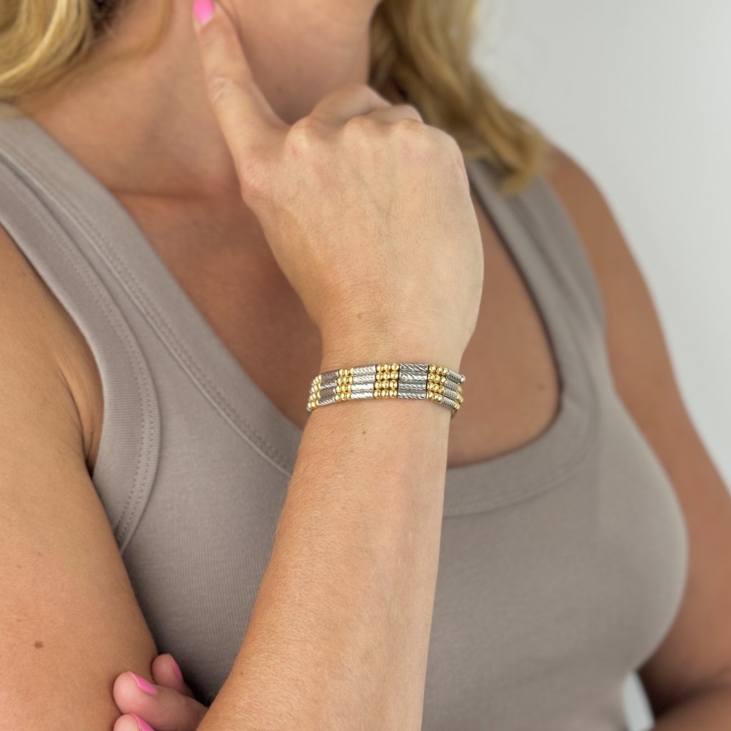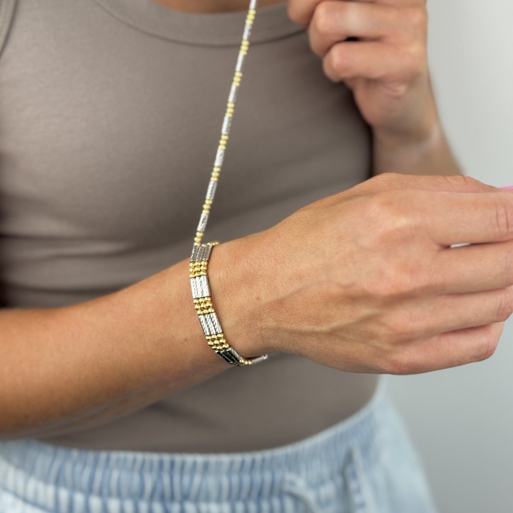 Stříbrný magnetický řetízek FARIDOS představuje revoluci v nositelnosti šperků. Jeho unikátní design kombinující rhodiovanou stříbrnou část s luxusním 14karátovým zlatým pokovením vytváří fascinující kontrast, který přitahuje pozornost. Jeden den jej můžete nosit jako dlouhý náhrdelník, další jako několikavrstvý náramek nebo jej omotat kolem zápěstí v originálním stylu.