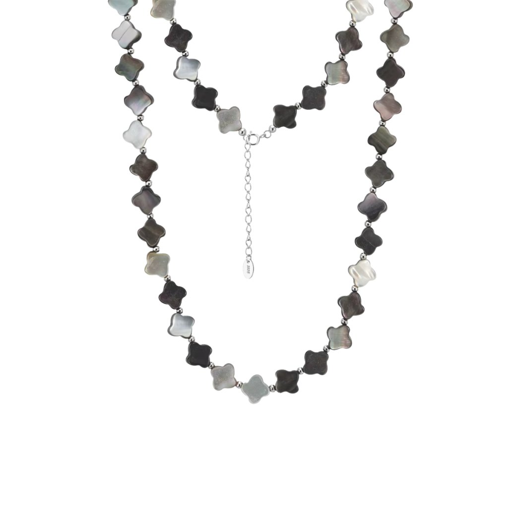 Náhrdelník je zdoben syntetickými perlami v perleťových a černých odstínech, které vytvářejí moderní a přitom jemný kontrast. Nastavitelná délka řetízku 40 + 5 cm umožňuje pohodlné nošení a přizpůsobení různým typům výstřihů. Rozměr přívěsku je 8 × 8 mm a šířka řetízku činí 2 mm, díky čemuž působí šperk velmi jemně a decentně.
